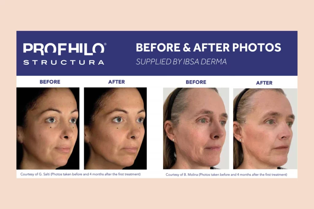 Profhilo works by bio-remodelling the skin rather than filling specific lines or areas. Once injected, it disperses beneath the surface and stimulates fibroblasts, which are responsible for producing collagen and elastin. This improves skin structure, elasticity, and hydration.